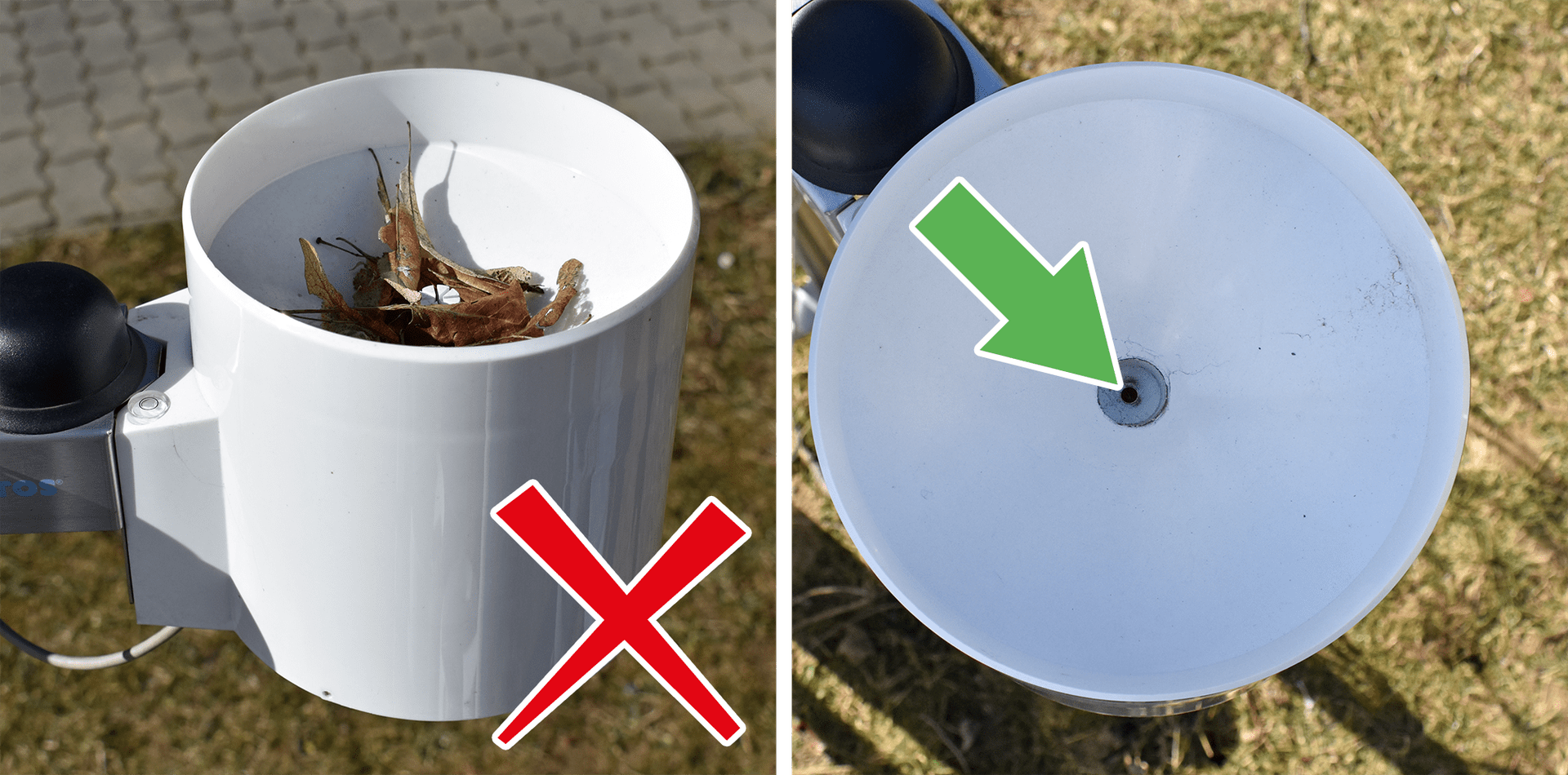 Vantaggi del sensore pioggia:L'area di raccolta più ampia offre una maggiore precisioneGrazie alla sua forma aerodinamica a doppio cono, il sensore misura la pioggia anche in caso di vento forteIl cucchiaio a doppio risolta garantisce affidabilità a lungo termine e richiede una manutenzione minimaFiltro dei detritiPunte di guardia degli uccelliLivello a bolle integratoPuò essere montato su un palo verticale e su una superficie piana